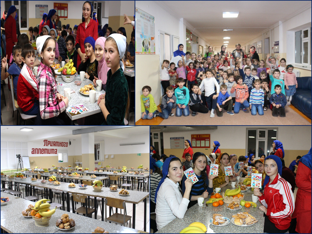 В рамках акции для ребят был организован сладкий стол. Руководство школы в лице директора Хашумовой А.В., педагогический коллектив поблагодарили представителей государственного автономного учреждения "Республиканская детско-юношеская газета "Наша школа» за оказанное детям-инвалидам внимание и проявленную заботу. Дети выражали радость и чувство признательности за создание теплой атмосферы добра, радости. По окончании сладкой трапезы сделали коллективное фото на память.
