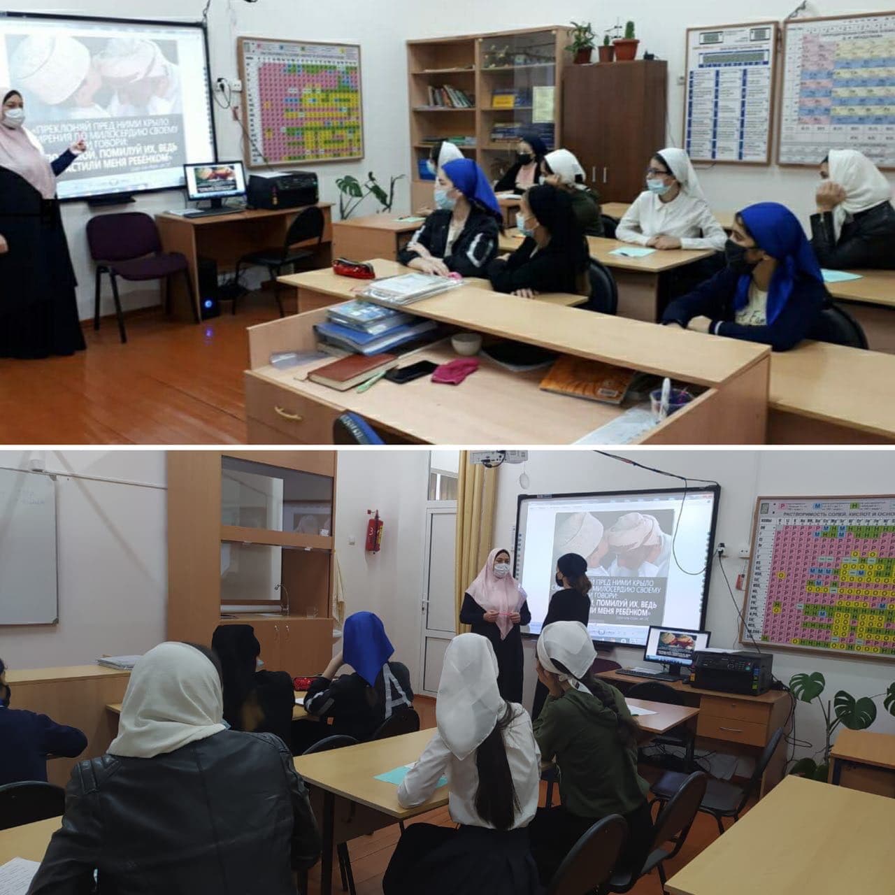 20.11.2020В целях воспитания у обучающихся чувства любви и уважения к родителям, гордости за свою семью, формирования представления о семье как о людях, которые любят друг друга, заботятся друг о друге, 18-го ноября 2020 года в ГБОУ «С(к)ОШИГС» педагог ДНР и В Радуева М.Т. провела беседу на тему «Почитание родителей в исламе». Основное внимание в беседе было уделено вопросу усвоения понятий «семья в исламе», «почитание родителей в исламе».Педагог сказал о том, как религия ислам украшает жизнь человека со всех сторон, как она учит нас этике почитания родителей, этике почитания друзей и коллег, этике почитания братьев и сестёр. В Коране многочисленные аяты требуют почитания родителей, совершения по отношению к ним добрых деяний. Даже если родители неверующие, Коран требует, чтобы с ними обходились по-доброму, вежливо и сохраняли с ними дружеские, уважительные отношения. В исламе большое значение уделяется взаимоотношениям родителей и детей. Дети, заботящиеся о родителях, получают во всём содействие и помощь Аллаха, находят путь истины, приобретают спасение. Довольство родителей тесно связано с довольством Аллаха.На этапе рефлексии учащиеся самостоятельно подвели итоги, как дети должны уважать и почитать своих родителей, рассказали о чувствах, которые они испытали на данном занятии.