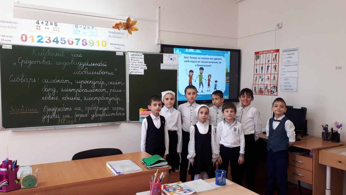 проведены классные часы в 1-11 классах по теме «Безопасность при использовании средств индивидуальной мобильности»;