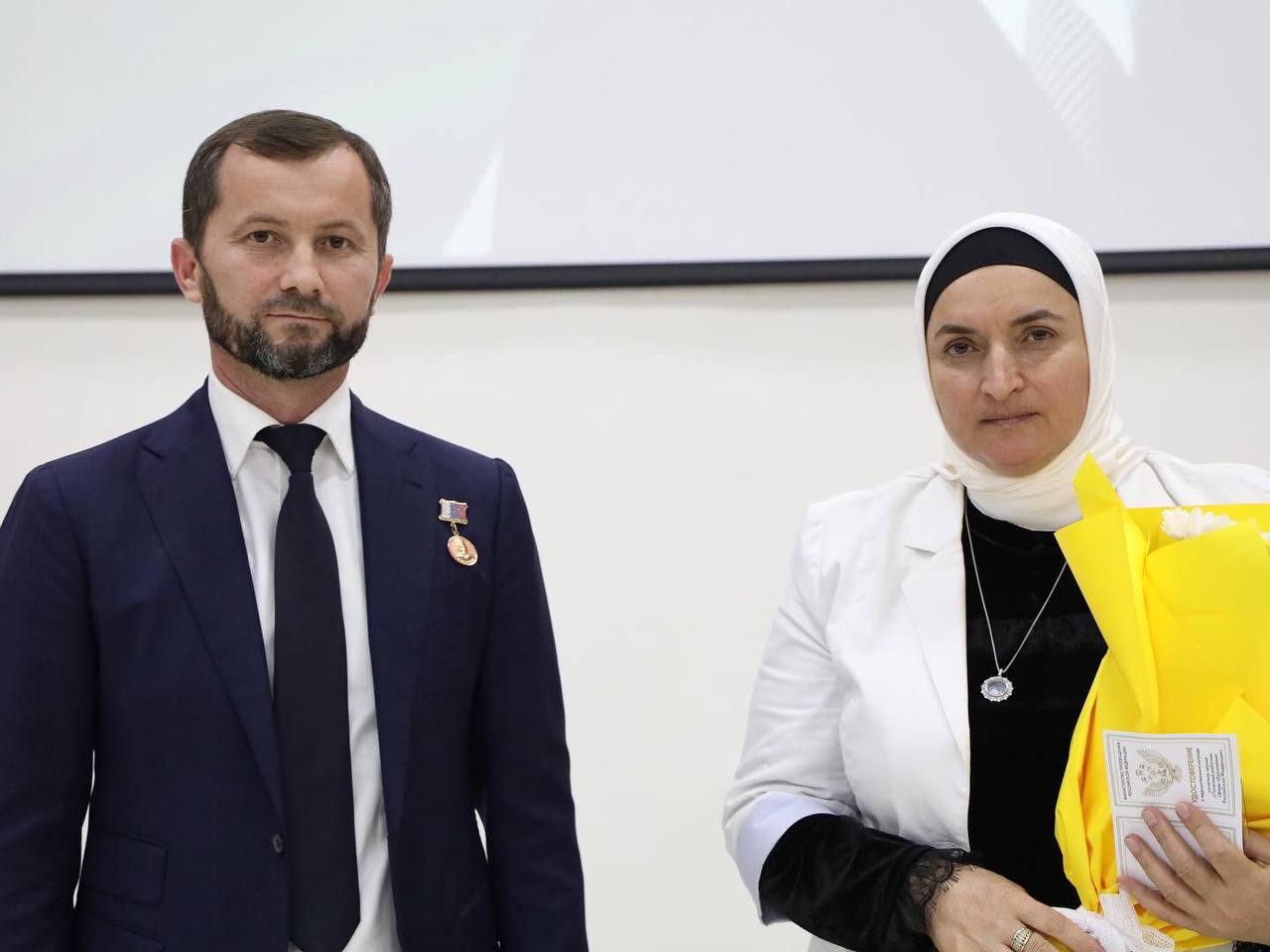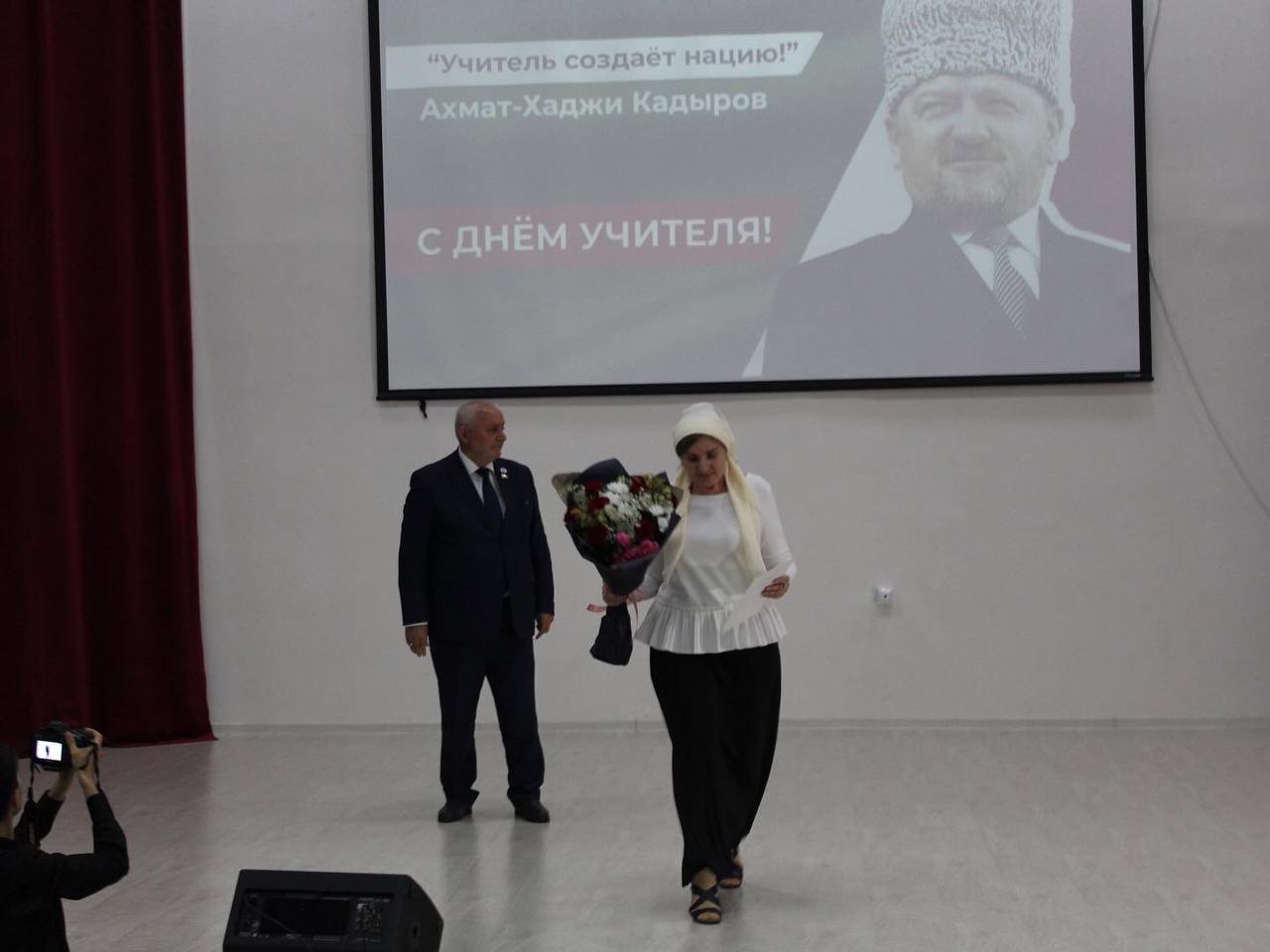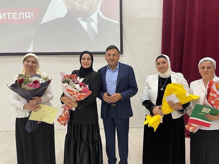 Приятно, что на мероприятии отметили и наших коллег. Так, за заслуги в педагогической и воспитательной деятельности и многолетнюю добросовестную работу звание «Почетный работник сферы образования РФ» было присвоено Яхъяевой Д.А., заместителю директора по воспитательной работе. За многолетний и добросовестный труд Почетную грамоту Правительства Чеченской Республики вручили Бачаевой Э.С. Благодарственное письмо от Парламента Чеченской Республики получила Ферзаули Ф.С., которая долгие годы работает с особенными детьми.Коллектив ГБОУ «С(к)ОШИГС» сердечно поздравляет педагогов Чеческой Республики с профессиональным праздником, а также своих коллег с заслуженными наградами. Дала т1аьхье беркате йойла!