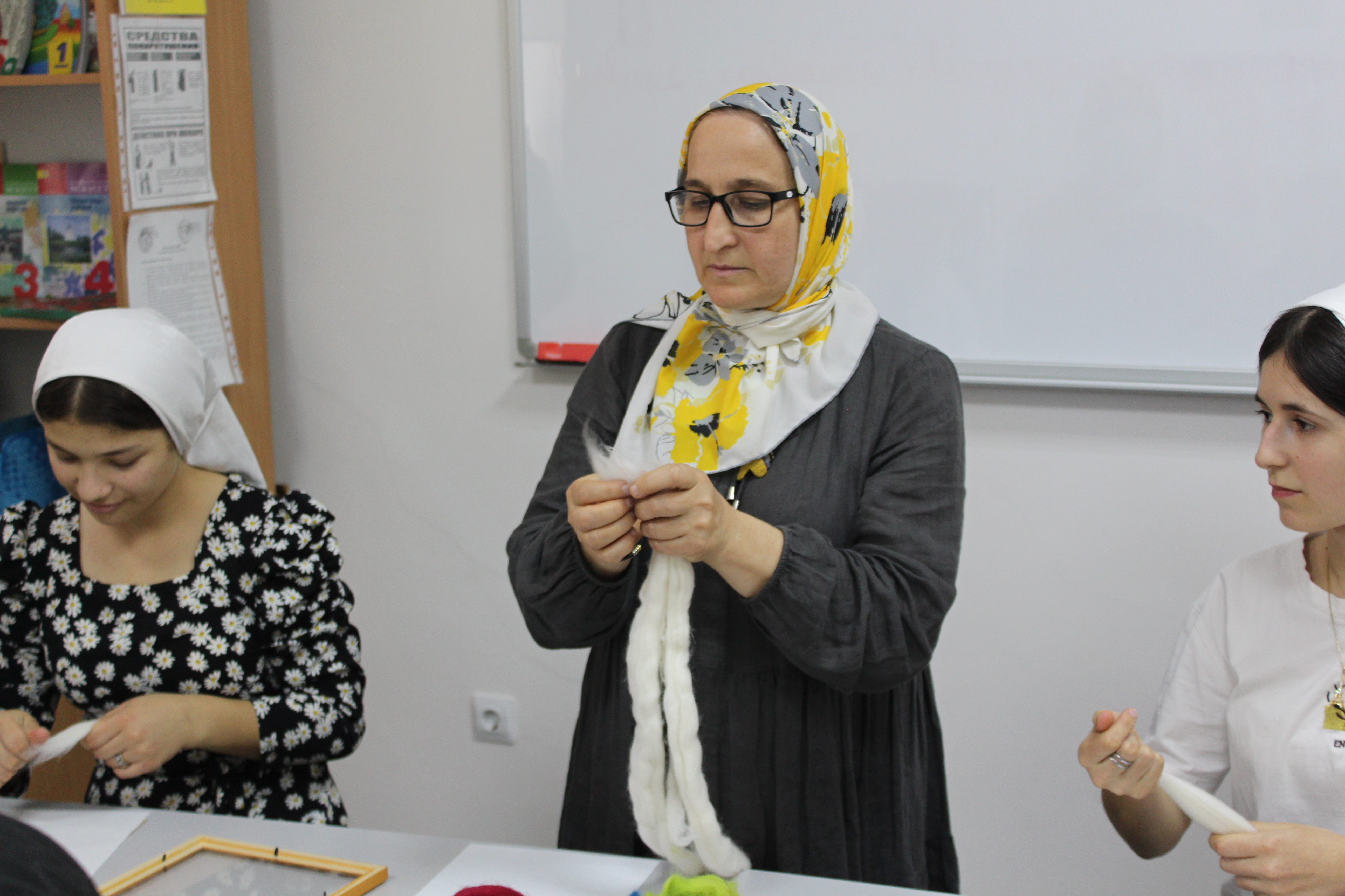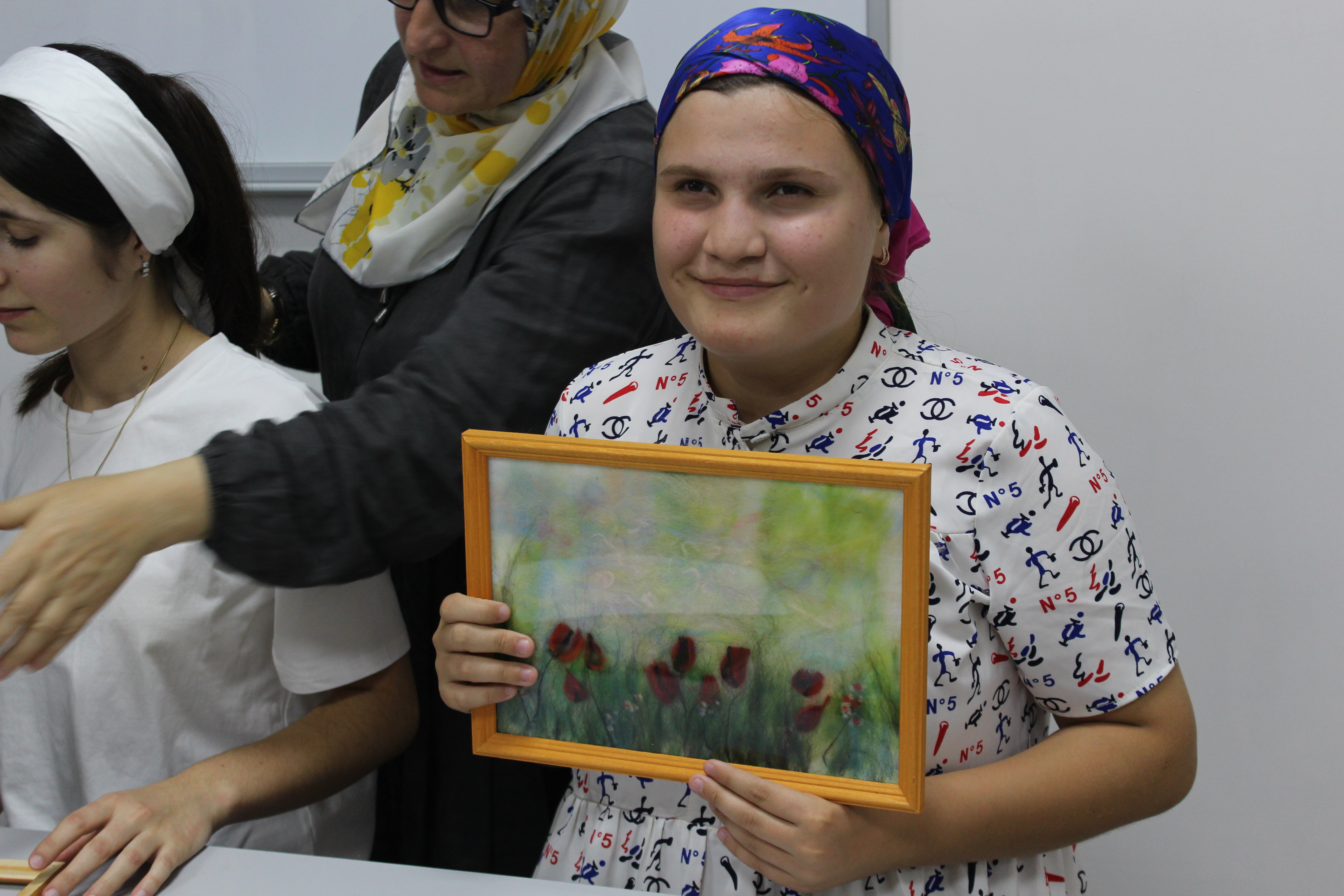 Перед началом мероприятия Хейда рассказала о технике работы с шерстью и о том, что из шерсти можно создать самые разнообразные вещи. Каждый желающий воспитанник школы-интерната смог принять участие в создании рисунка по заранее подготовленным материалам и получить радость творения своими руками. Картины, которые были изготовлены учащимися, остались им на память.