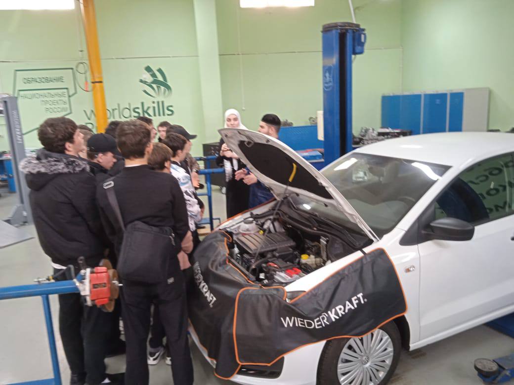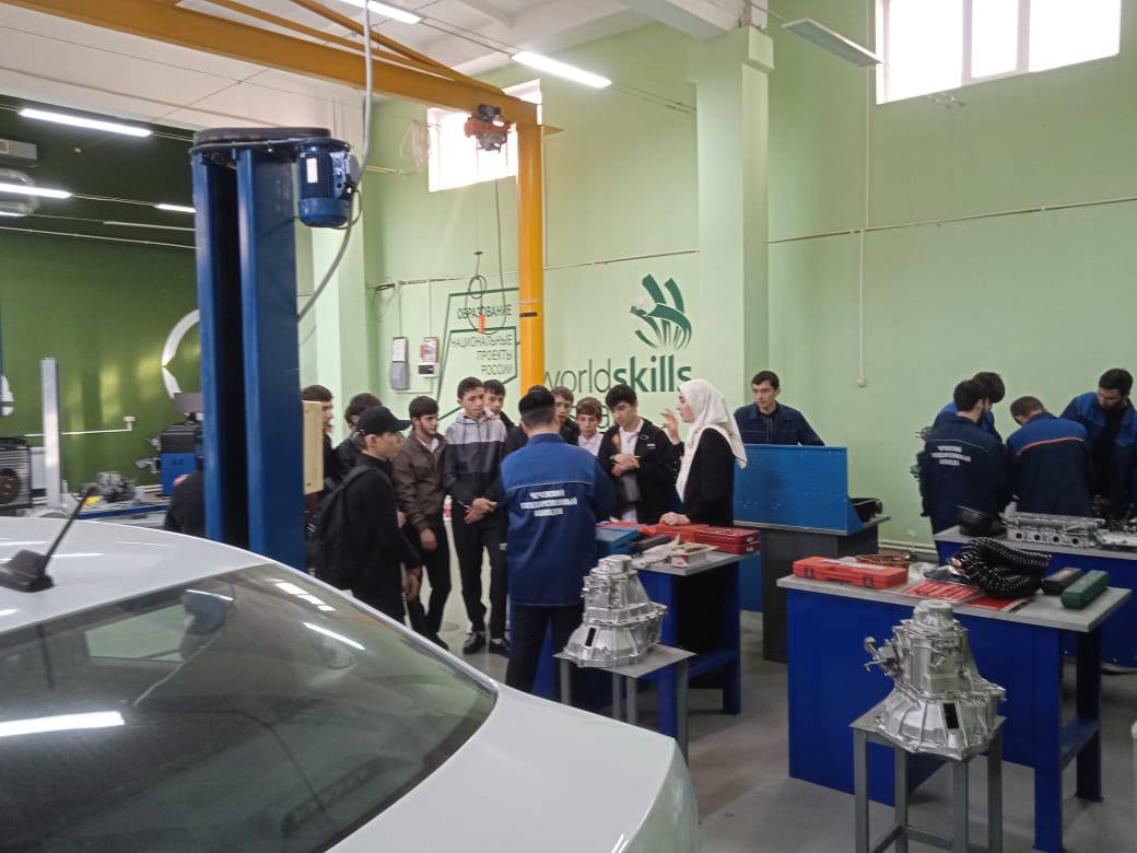 16.11.2023Во исполнение приказа Министерства образования и науки Чеченской Республики № 802-п от 04.07.2023 года «О реализации проекта по профессиональной ориентации учащихся 6-11-х классов общеобразовательных организаций «Билет в будущее» на территории Чеченской Республики», на основании приказа по школе, 14-го ноября 2023 года был организован выезд обучающихся 7-11 классов в количестве 15 человек под руководством педагога-навигатора проекта «Билет в будущее» Дугаева А.В. на профессиональную пробу по компетенции «Мастер по ремонту и обслуживанию автомобилей» в ГБПОУ «Чеченский государственный колледж».