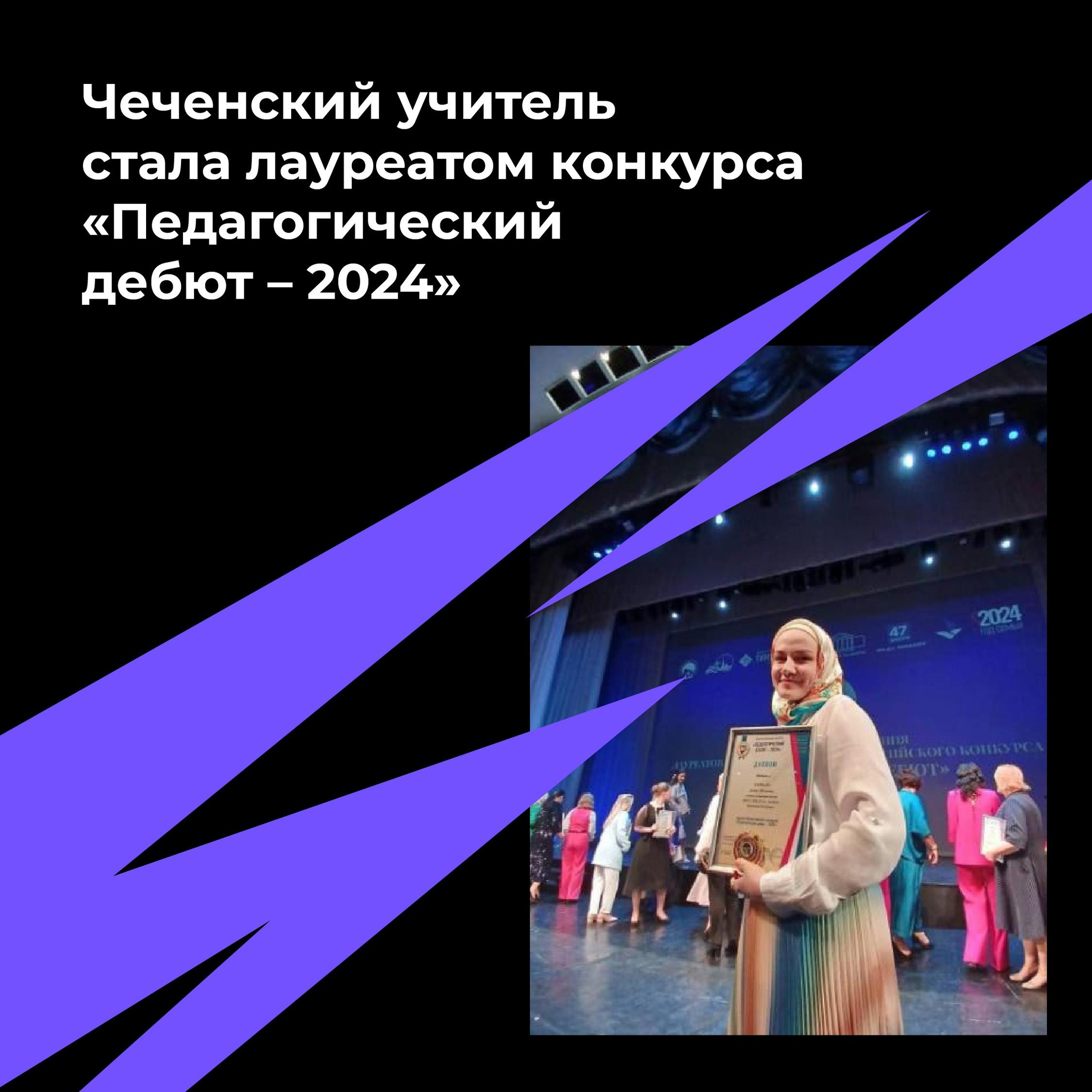 11.03.2024Представительница педагогического сообщества Чеченской Республики Амира Каимова стала лауреатом XIX предъюбилейного Всероссийского конкурса «Педагогический дебют – 2024» в номинации «Молодые учителя».