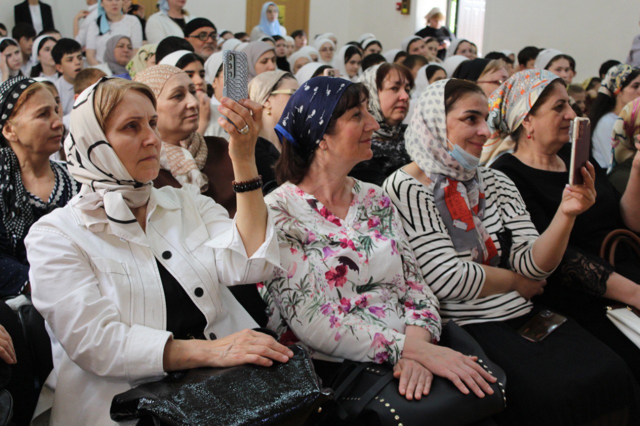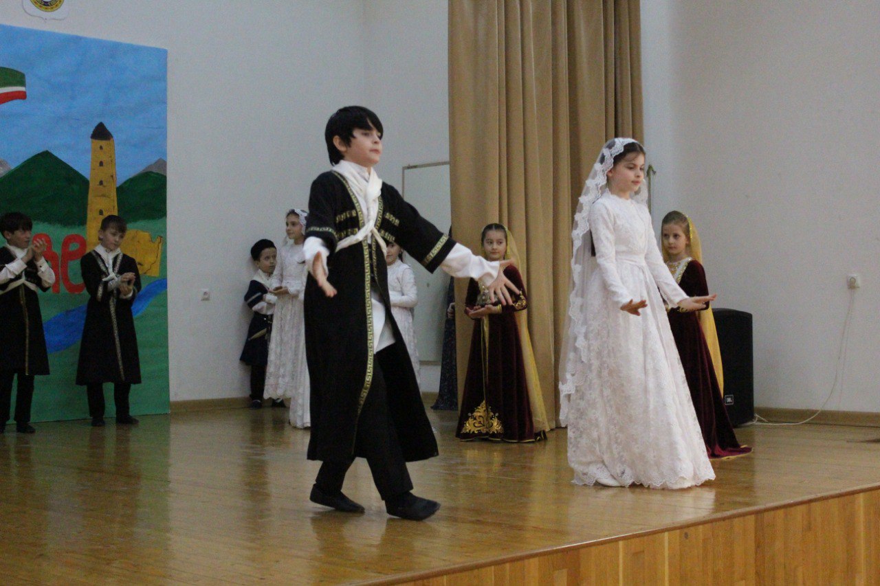 Далее в актовом зале состоялся праздничный концерт «Ненан мотт-къоман са». Для зрителей прозвучали песни на чеченском языке в жестовом исполнении, стихи на родном и русском языках, в которых воспевалась любовь к Родине, прославлялась красота природы родного края. Маленькие джигиты исполнили яркий, зажигательный национальный танец.