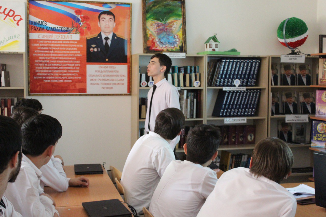 В библиотеке школы прошла беседа с обучающимися 7-8 классов «Ненан мотт - дахаран хазна». Ребята читали стихи на родном языке, говорили о достойных представителях чеченской нации, имеющих достижения в той или иной области.