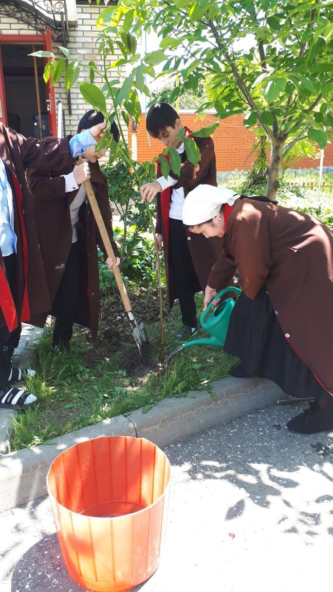Эта новая замечательная традиция, которую поддержали обучающиеся и педагоги школы, направлена на доброе и полезное дело: с одной стороны, это сохранение памяти о героях войны, о родных и близких людях, которые приближали Победу, с другой – ежегодное озеленение и благоустройство территории нашей школы, города, республики.