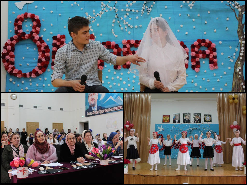 Седьмого марта 2018 года в актовом зале школы-интерната прошло праздничное мероприятие «А мамины глаза…», в рамках которого прошёл конкурс «А ну-ка, девушки!» между командами девушек 8-11 классов «Весёлые девчата» и «Милашки». Ответственными за организацию праздника были учитель Арабиева М.П. и воспитатель Дикаева И.М. Подготовка к мероприятию была на высоте, всё было продумано до мелочей: весеннее, очень красивое убранство зала, декорации, интересный и захватывающий сценарий, в котором были не только тщательно подобранные стихи, песни и музыка, но и конкурсы, танцы, мини-спектакли. В программе состязаний были: викторина, конкурсы «Готовим с любовью» (кулинарный), «Весеннее обновление» (конкурс нарядов), конкурс миниатюр (творческий). Каждая из участниц конкурса продемонстрировала зрителям свои таланты.