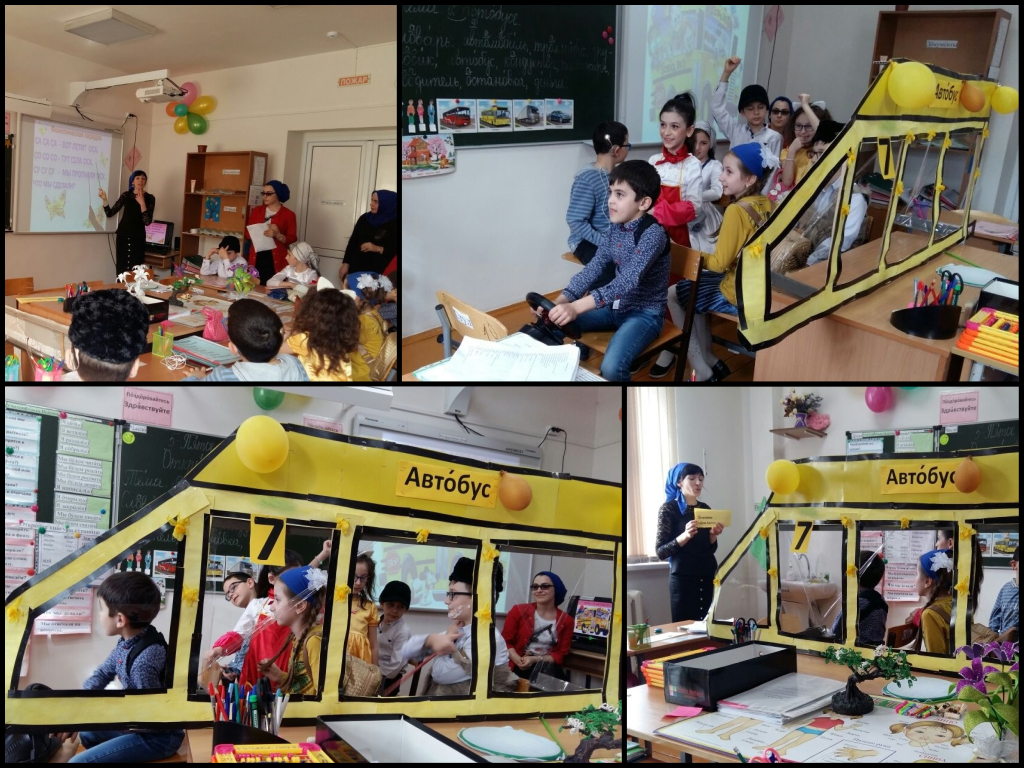Пятого апреля 2018 года в 1б классе воспитателем Мусаевой Х.А. проведено открытое внеклассное занятие по теме «В автобусе».