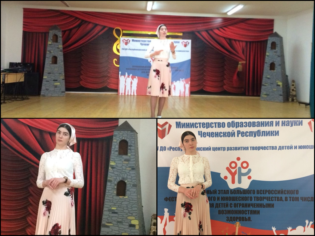 15.05.2018В целях выявления, развития и поддержки детского творчества, воспитания и развития личной успешности детей и молодёжи, в том числе с ограниченными возможностями здоровья, приобщения их к ценностям российской и мировой культуры и искусства с марта по май 2018 года в Чеченской Республике проводится региональный этап Большого всероссийского фестиваля детского и юношеского творчества, в том числе для детей с ограниченными возможностями здоровья.