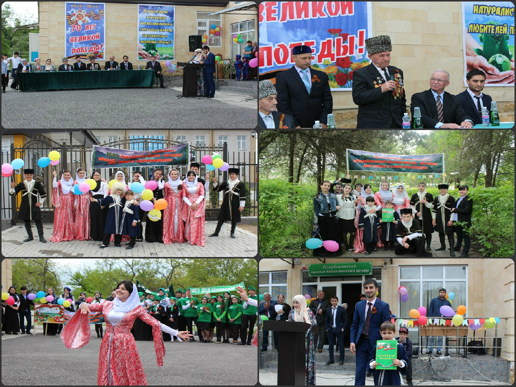 7 мая 2015 года в Республиканском эколого-биологического центре проведен республиканский слёт юных экологов, натуралистов и любителей природы, посвящённый 70-летию Победы в Великой Отечественной войне. Участники слёта - районные эколого-биологические станции, Центр юных натуралистов и экологов г.Аргун, ГБОУ «Специальная (коррекционная) общеобразовательная школа-интернат для глухих и слабослышащих», делегаты СОШ № 20, 28, 60, 16, 63, 67, 35, гимназий № 12, 14 г.Грозный. Почётными гостями слёта были ветеран Великой Отечественной войны Дудаев Салман Меджидович, председатель ветеранов Ленинского района, ветеран Великой Отечественной войны Берсанов Ризван Абуевич. На мероприятии присутствовали Гапурова Мадина Шахрудиновна – начальник отдела воспитания, дополнительного образования и защиты прав детей Министерства образования и науки ЧР, Тимергераев Асланбек Нажмудинович – начальник отдела Комитета Правительства ЧР по дошкольному образованию, Шовхалова Халимат Ахмедовна – представитель рессовета Профсоюза образования в Заводском районе,Элипханов Мансур Умарович – преподаватель кафедры экологии и безопасности жизни ЧГПИ, Омаров Тимур Султанович – директор Республиканского центра детско-юношеского туризма и экскурсий. Слёт открыли исполнением Гимна экологов. Директор Республиканского эколого-биологического центра Нухигов Рамзан Солиевич поздравил гостей, участников слёта с 70-летием Великой Победы и успешным завершением 2014-2015 учебного года. На фоне аудиообращения диктора Левитана об объявлении войны почтили память о тех, кто не дожил до победного дня. Своими воспоминаниями о героических днях сражения поделился ветеран ВОВ Дудаев Салман: – Прошло 70 лет как закончилась Великая Отечественная война, но эхо этой войны до сих пор не затихает в людских душах, потому что у времени есть своя память, которая никогда не меркнет… С поздравительной речью выступила Шовхалова Халимат, от имени Профсоюза образования в Заводском районе вручила денежное вознаграждение ветеранам. Команды-призеры, педагоги, обучающиеся эколого-биологических станций были награждены Почетными грамотами, дипломами. В честь лучших команд прозвучали музыкальные поздравления, которые представили обучающиеся ЭБС республики: Урус-Мартановская – «Шуточный танец», Надтеречная – «Сказка Эколога», Аргун – песня «Даймохк». Инсценированная песня «Просьба» в исполнении обучающихся ЭБС Гудермесского района прозвучала как мольба ко всем живущим на Земле относиться к нашему общему дому бережно, с любовью и во благо нынешнего и будущего поколений. Воспитанники нашей школы подготовили для гостей и участников слета прекрасный музыкальный подарок: жестовую песню «Чечня моя» и национальный танец, которые не оставили равнодушными никого из зрителей. По итогам мероприятия школа-интернат заняла II место в номинации «Самый активный» (среди школ г. Грозный). Почетную грамоту вручили самому юному танцору – ученику 0б класса Тесаеву Абубакару.