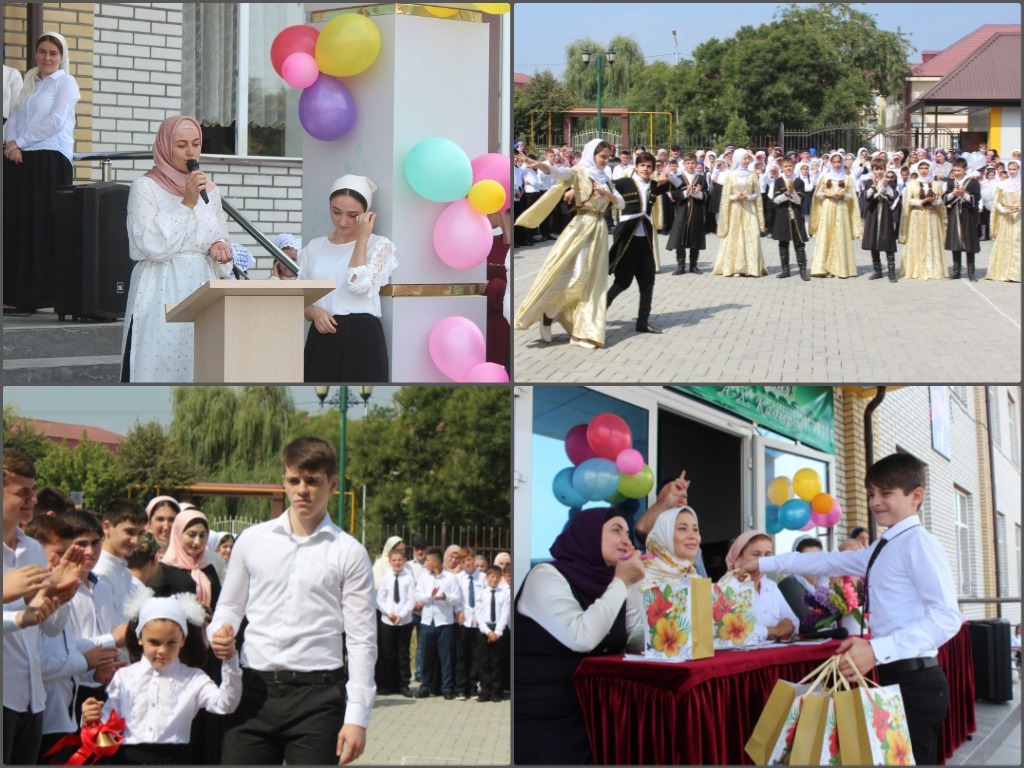 На праздник собрались красивые и нарядные ученики, педагоги, родители и гости. Бурными аплодисментами встретили присутствующие выпускников школы и маленьких первоклашек. Торжественная часть линейки началась под Гимны РФ и Чеченской Республики.