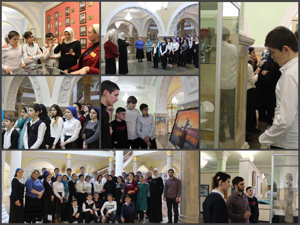 Второй уровень уникального здания занимает картинная галерея. Здесь ребята увидели работы разных мастеров.Тут собрано более 500 работ известных художников России, подаренных авторами республике. Среди них и произведения чеченских художников. К примеру, Саид Бицираев, проживающий в Санкт-Петербурге, подарил музею 13 лучших картин.
